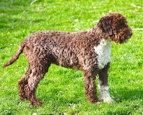 That litter was numerous with many females. After they went to their respective families we followed them all. They all became very nice Lagottos. Beautiful morphology and structure, but also open character, lively temperament, and sweet as only the Lagotto can be. Here is Evita.